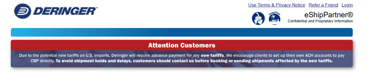 An image added to the ESP Login page to notify users of the possible upcoming tariff changes.