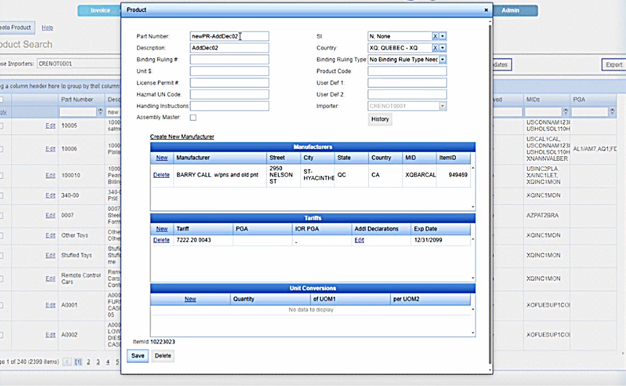 For purposes of this, we pre-built the part and gave it the part number newPR-AddDec02. We're going to do a declaration type 02.